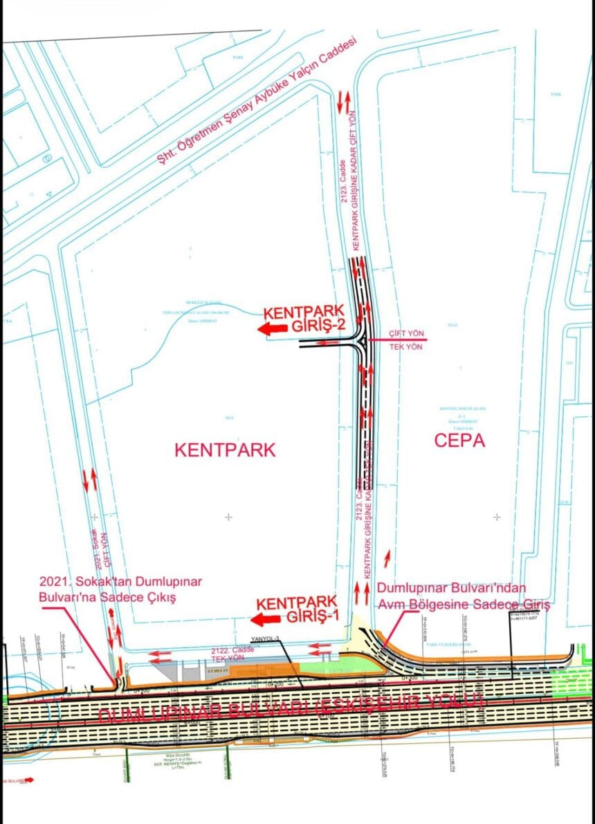 Alınan karar doğrultusunda; 2123 Cadde’den Dumlupınar Bulvarı’na çıkış kapatılacak ve bu noktadan yalnızca girişe izin verilecek. AVM’den çıkış yapmak isteyen araçlar ise, açık otopark içerisinden yönlendirilerek 2121 Sokak istikametine yönlendirilecek. Yeni düzenlemeye yönelik çalışmaların hafta sonu başlaması planlanıyor.