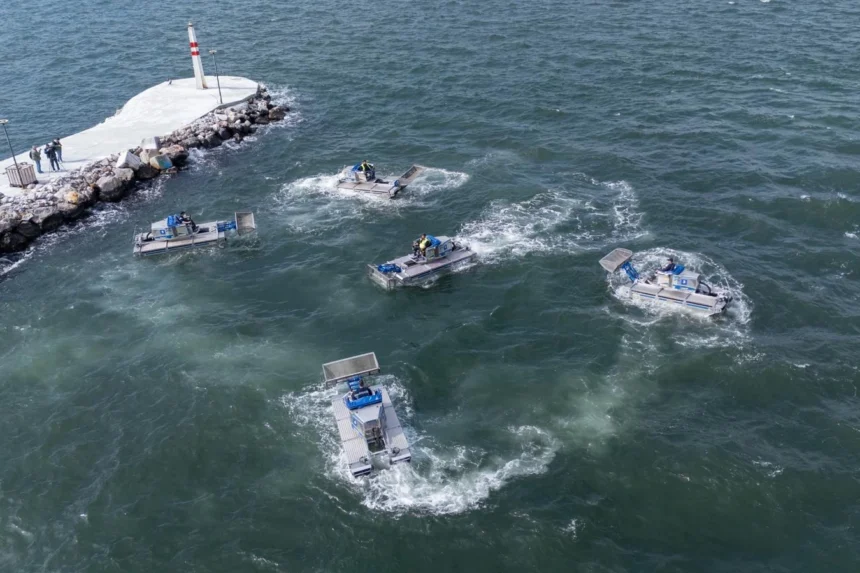 Denizde ve karada hareket edebilme özelliğine sahip olan bu araçlar, paletli yapıları sayesinde özellikle sığ kıyı alanlarında ve erişilmesi zor bölgelerde yüksek manevra kabiliyetiyle çalışabiliyor. Araçların ön kısmında bulunan süzgeç tipi kepçe sistemi, su yüzeyinde biriken deniz marulu ve benzeri organik materyallerin etkin biçimde toplanmasını sağlıyor. Toplanan materyaller daha sonra uygun yöntemlerle bertaraf edilerek çevreye yeniden karışmasının önüne geçiliyor. Bu araçların en önemli avantajlarından biri de, kıyıya yakın sığ alanlarda ve lagün benzeri bölgelerde karadan denize kesintisiz şekilde çalışabilmeleri ve temizlik faaliyetlerinin sürekliliğini sağlamaları.