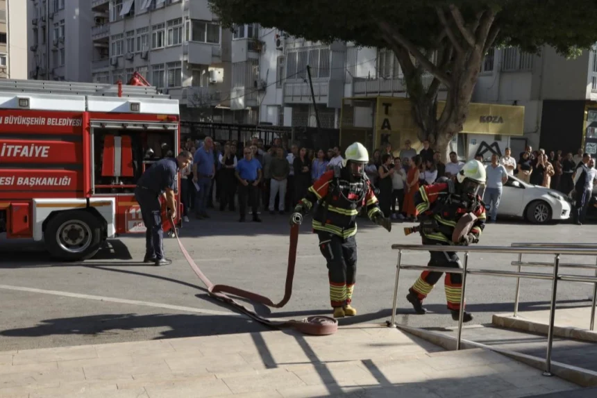 Mersin Büyükşehir Belediyesi Ana Hizmet Binası’nda, olası acil durumlara hazırlık amacıyla yangın tatbikatı gerçekleştirildi.