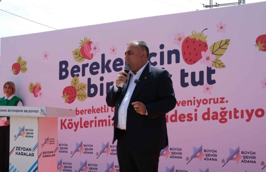 Çilek dağıtım Töreninde söz alan Adana Büyükşehir Belediyesi Başkan Vekili Güngör Geçer, Pozantı halkına ve muhtarlara Başkan Zeydan Karalar’ın selamlarını iletti.